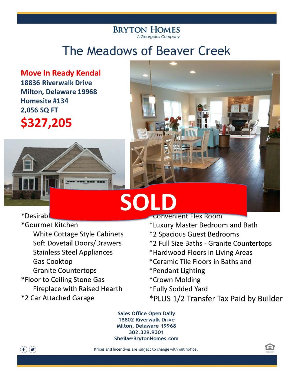 Move In Ready - SOLD For more information please contact a Sales Representative at 302-329-9301. Community: The Meadows of Beaver Creek